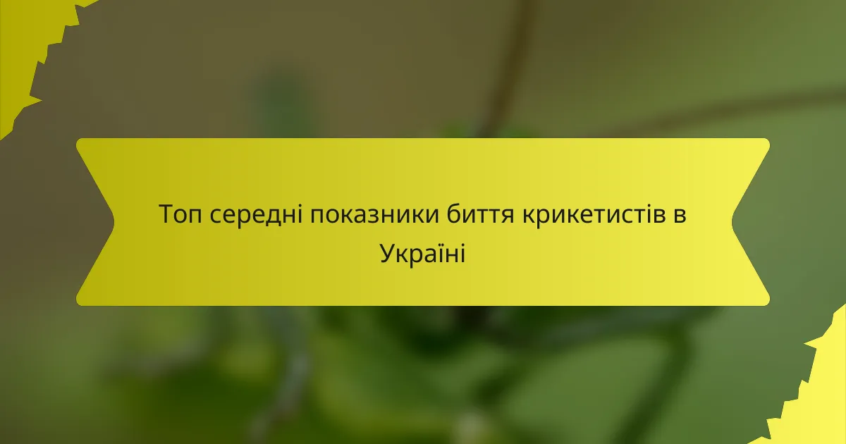 Найкращі середні показники биття крикетистів в Україні відображають рівень продуктивності гравців у внутрішніх та міжнародних змаганнях. Ці середні показники можуть суттєво варіюватися в залежності від досвіду гравця, якості суперників та умов гри.